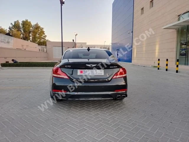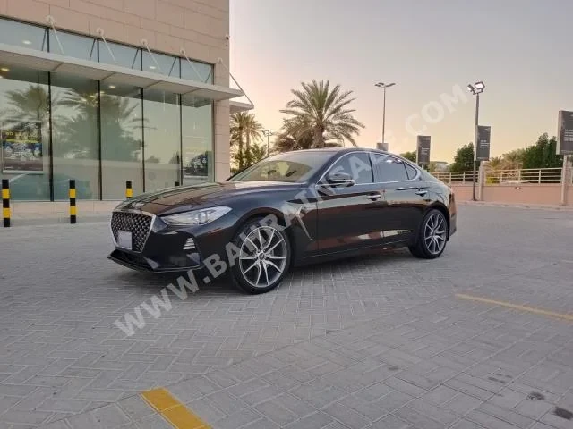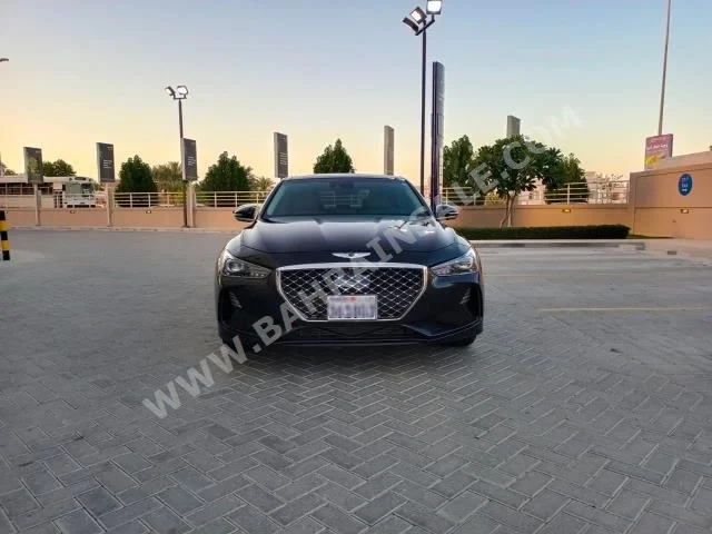A 2019 Hyundai Genesis Coupe sedan in black with beige leather interior, 24,000 KM, RWD, automatic transmission, 4-cylinder gasoline engine, equipped with GPS, camera, sensors, Bluetooth, and a sunroof, is for sale from the USA; it does not have a CD or DVD player and is sold without warranty.