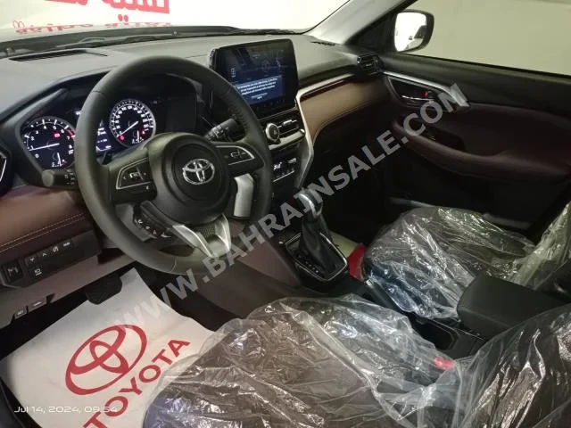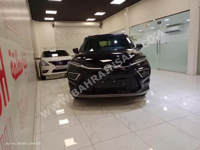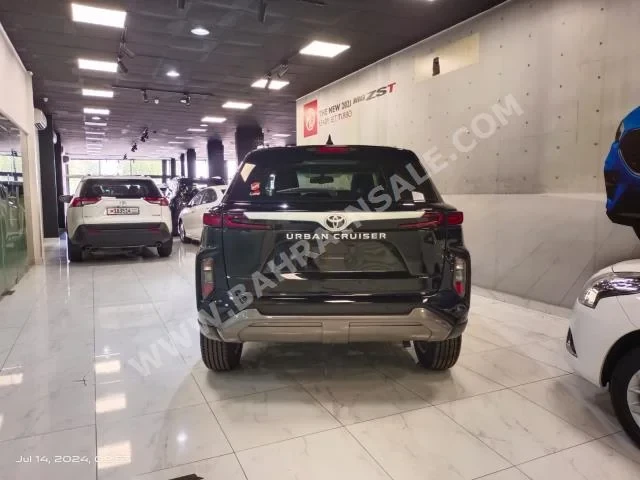 Toyota Urban Cruiser GLX 2024 SUV Automatic 4-cylinder, 0 KM, FWD, Black exterior with Brown interior, leather seats, equipped with GPS, camera, sensors, panorama roof, Bluetooth, no CD/DVD, gasoline, imported from Kuwait, with warranty, and available for sale.