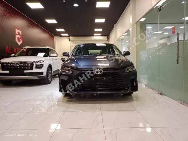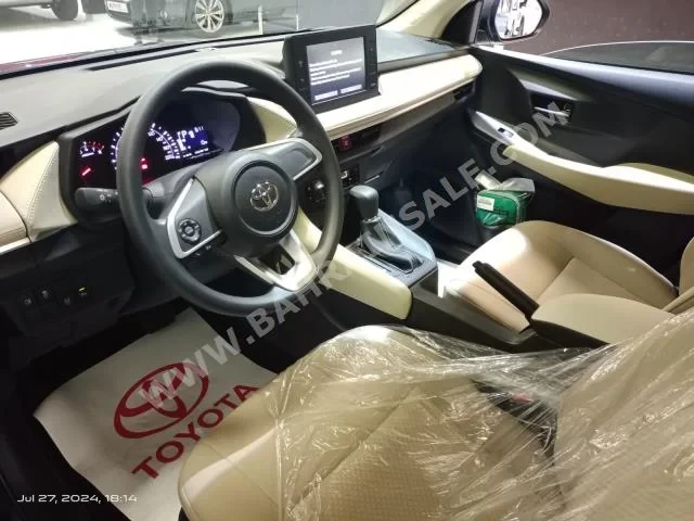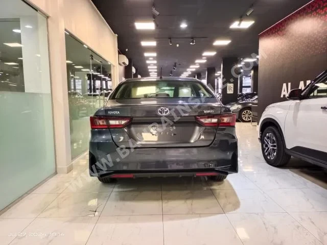 Toyota Yaris Standard 2024 Sedan Automatic, 4-cylinder, 0 KM, FWD, finished in Gray with Beige cloth interior, no GPS, no CD, no DVD, equipped with camera, sensors, and Bluetooth, no slide roof, comes with warranty, gasoline, imported from Kuwait, and available for sale.