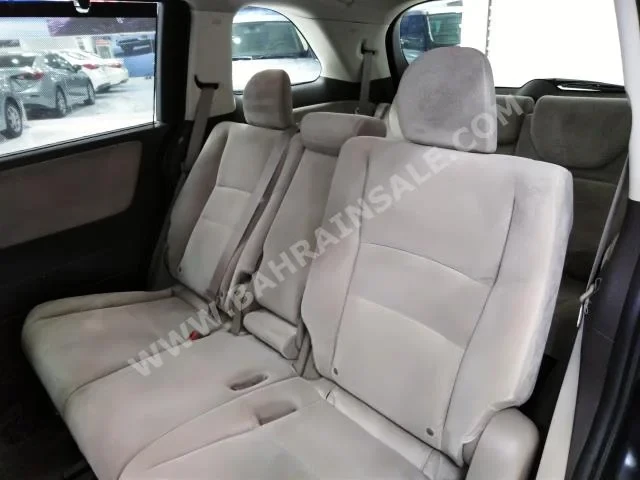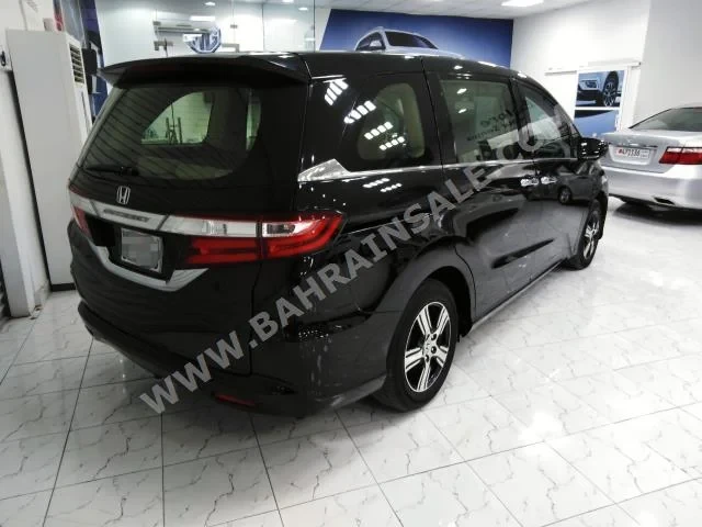 Honda Odyssey Standard 2015 Van/Bus Automatic, 4-cylinder, 142,000 KM, RWD, finished in Black with Beige cloth interior, no GPS, with CD, no DVD, equipped with camera, sensors, and Bluetooth, no slide roof, gasoline, no warranty, imported from dealer, and available for sale.