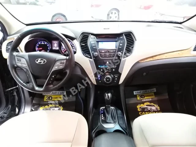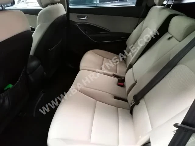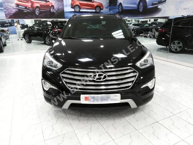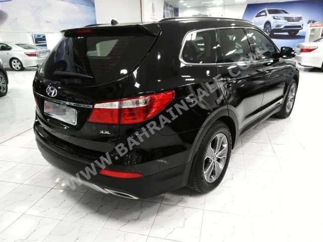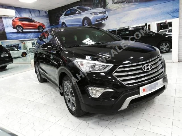 Hyundai Grand Santa Fe Standard 2016 SUV Automatic, 6-cylinder, 17,000 KM, RWD, finished in Black with Beige cloth interior, no GPS, with CD, no DVD, no camera, equipped with sensors and Bluetooth, panorama roof, gasoline, no warranty, imported from dealer, and available for sale.